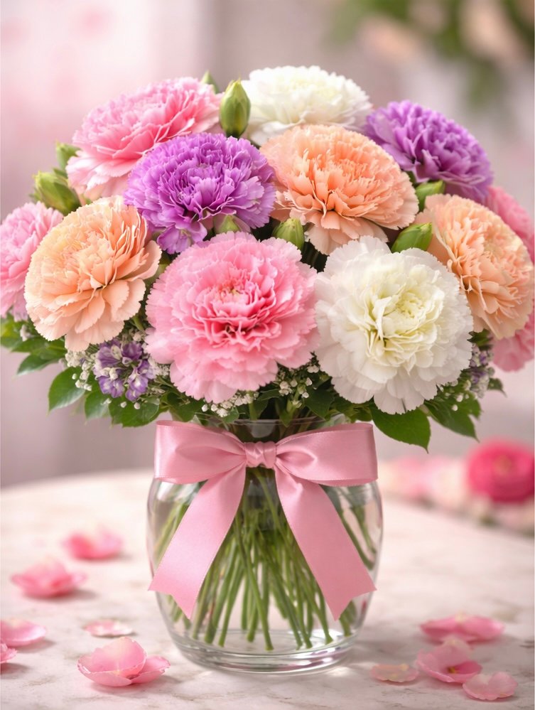 Pair carnations with soft greenery or winter whites for a seasonal look, or mix in snowy textures for a nod to snowdrops. It’s a birthday bouquet that feels intentional, meaningful, and way more exciting than another candle.