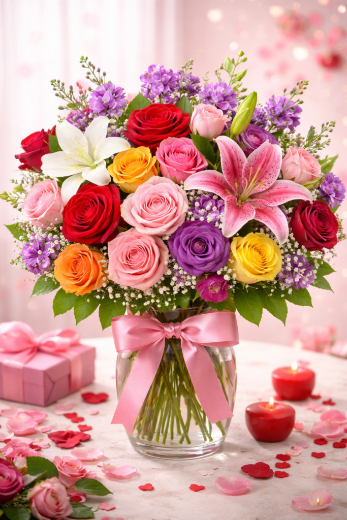 Can’t choose just one? Mixed-color arrangements tell a layered story—love, friendship, appreciation, and joy all wrapped into one bouquet. They’re perfect for relationships that don’t fit into a single box (because the best ones never do).